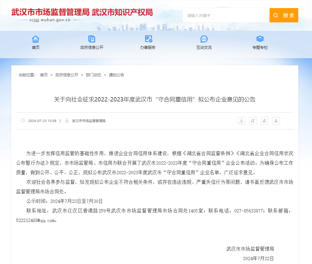 近日,武漢市市場監督管理局、市信用辦聯合開展的